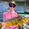 The New Years week was also a very special week because we hosted our junior peacock expert and fly-fishing machine thirteen-year-old Jackson Wanderer. Jackson has been fishing the Agua Boa Amazon Lodge since he was eight years old and has a pretty impressive catalog of monster Peacocks landed over the years. He also has an exceptional record sight fishing for Arowana as well. However, in recent years Jackson has put Pirarucu on his priority list and spent a lot of time focusing on them last week. With one strike and no hook-ups Jackson has to leave his Pirarucu dreams for another trip, but no doubt he will eventually succeed. Enjoy a shot of Jackson with a nice Arowana and another shot with a monster Peacock bass. Right on Jackson!