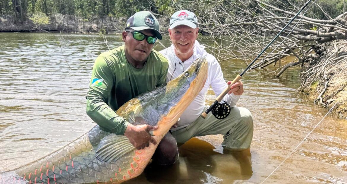 Congratulations to Mike on his extraordinary Arapaima specimen, weighing approximately 200 lb,a catch of a lifetime.